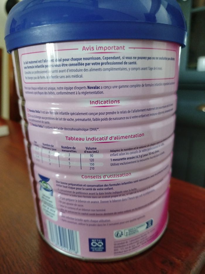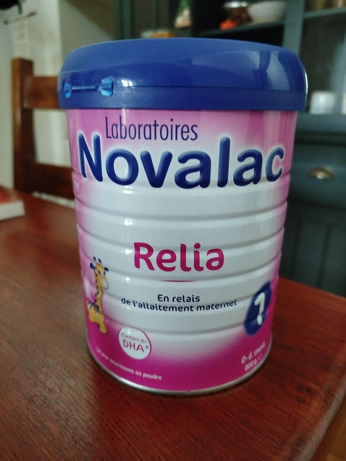 Lait Novalac Relia, maternisé 0-6 mois en relais de l'allaitement maternel. Boite neuve de 800g, pas ouverte avec date de péremption longue (18/09/2026)
