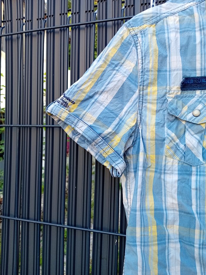 Chemise à carreaux bleue et jaune avec manches courtes En coton Taille S Marque Bonobo