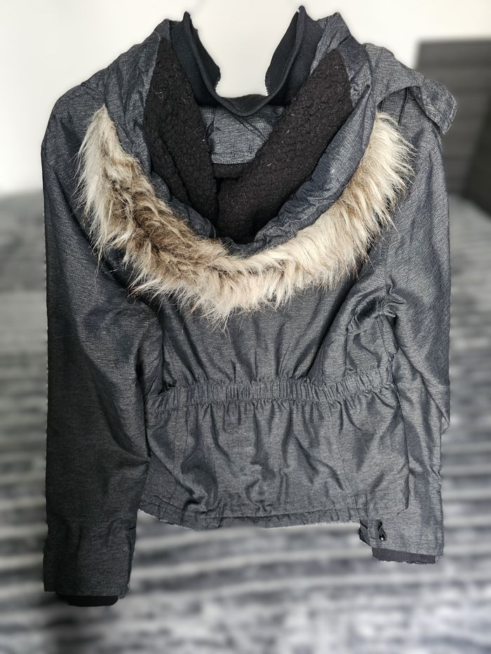 🧥 Veste / Parka mi-saison SUPERDRY – Femme Veste zippée de la marque Superdry, au style urbain et féminin. Coloris gris anthracite chiné, facile à assortir. Coupe cintrée à la taille avec élastique pour une silhouette féminine. Capuche avec bordure effet fourrure (amovible), intérieur doublé polaire chaud et confortable. Fermeture zippée, poches zippées, finitions soignées et détails brodés signature Superdry. Idéale pour l’automne / hiver doux ou la mi-saison. 👤 Pour femme 📏 Taille : M (femme) Mesures à plat : - Aisselle à aisselle : 57 cm - Longueur (haut/bas) : 63 cm