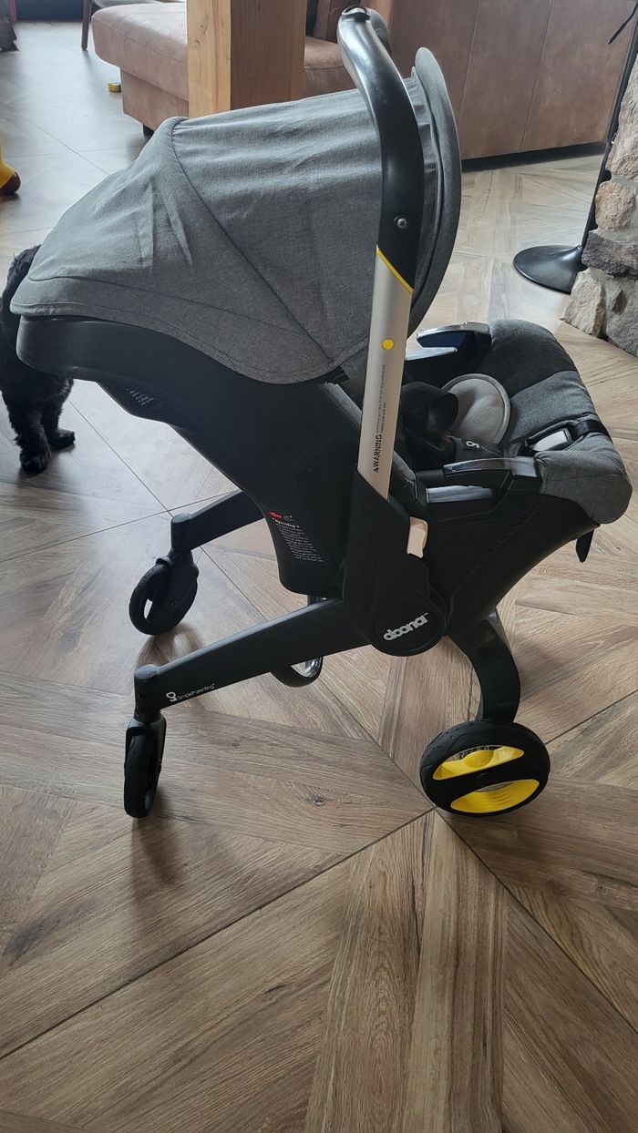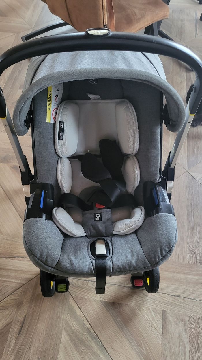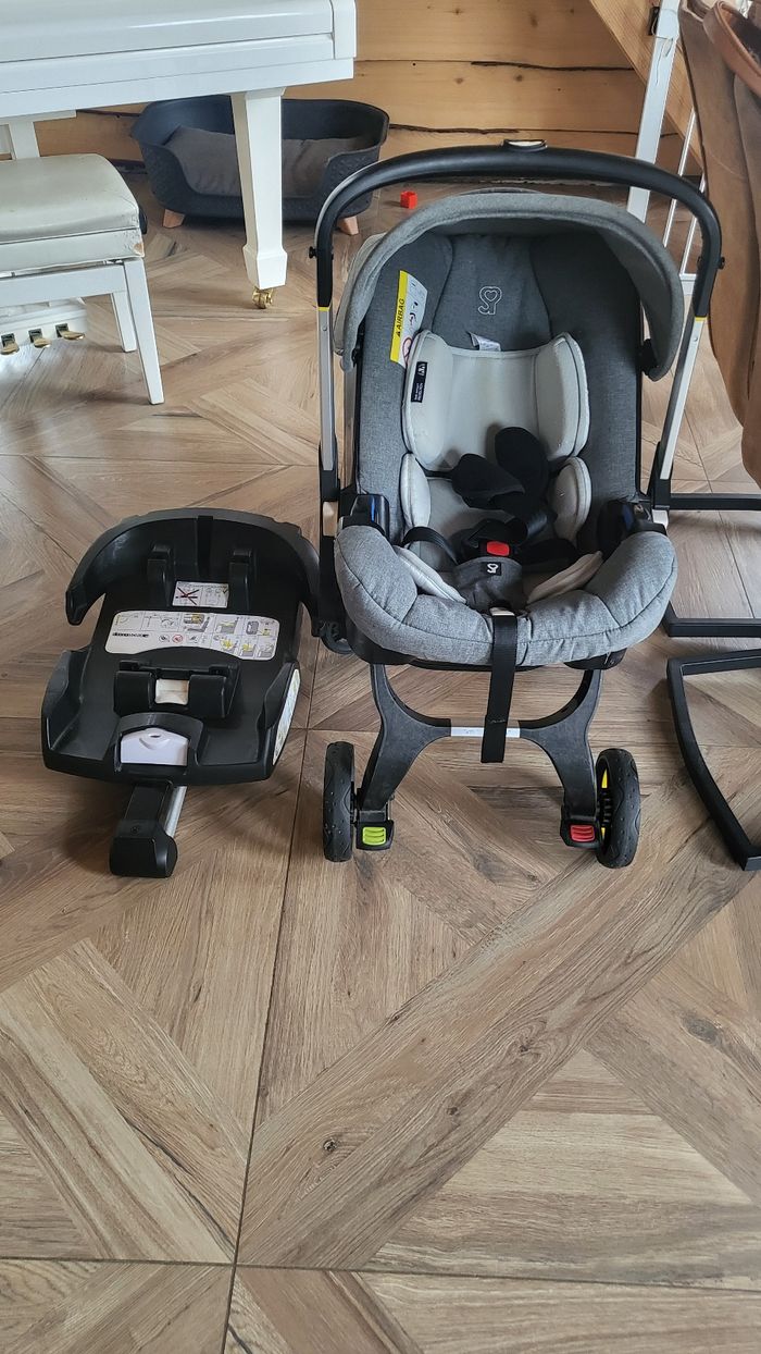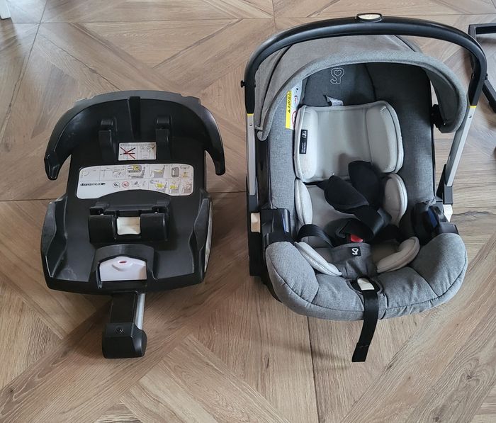 Poussette doona avec sa base isofix Très facile et pratique vue qu elle fait siège auto en même temps que poussette. Gain de place vue qu on a plus besoin de poussette dans le coffre jusqu a 12mois.