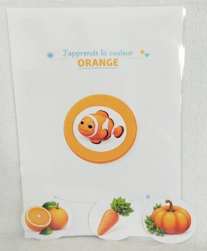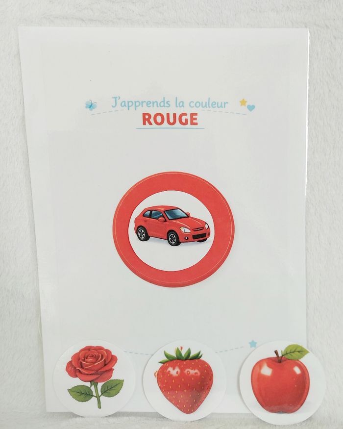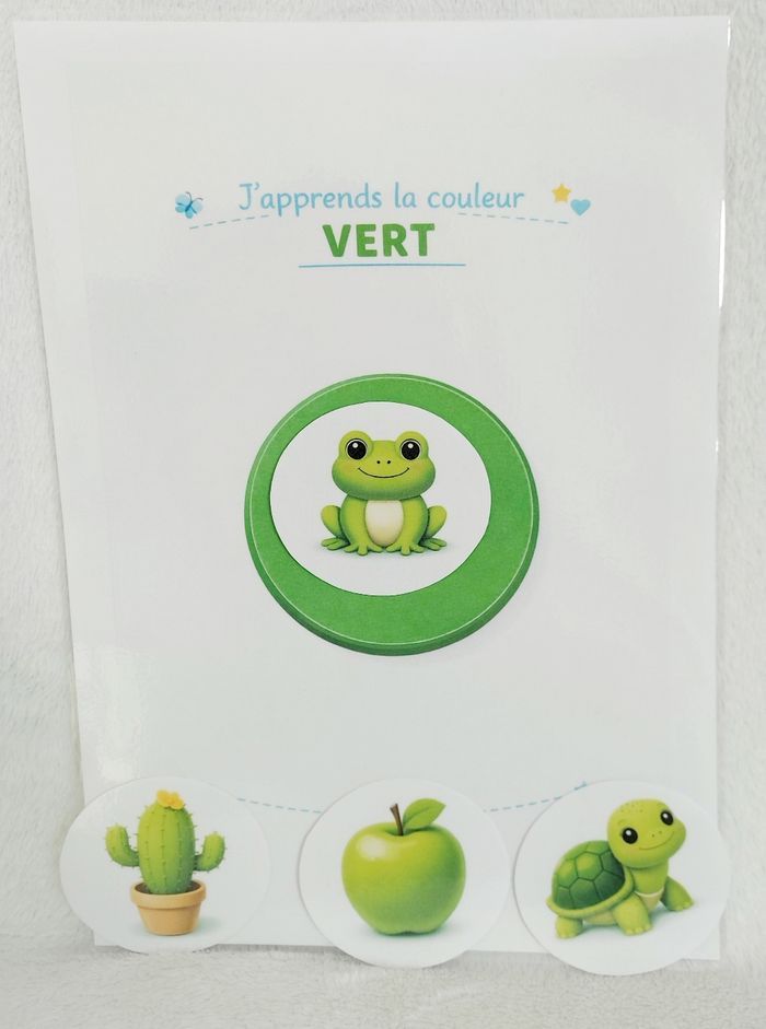 🌈 J’apprends les couleurs – Activité éducative ludique dès 18 mois Un support simple, efficace et amusant pour aider votre enfant à reconnaître et nommer les couleurs tout en développant sa motricité fine grâce au scratch. 📚 Ce pack comprend : • 6 fiches couleurs (rouge, jaune, bleu, vert, etc.) • Emplacement central avec scratch pour manipulation • Format A4 plastifié • Scratch déjà posé • Prêt à utiliser ✨ Objectifs pédagogiques : ✔ Reconnaissance des couleurs ✔ Association visuelle ✔ Développement du vocabulaire ✔ Motricité fine ✔ Autonomie 💡 Idéal pour les tout-petits (18 mois à 3 ans) 💧 Se nettoie facilement (plastifié) 🖐 Réutilisable à volonté Création artisanale réalisée avec soin. 📦 Envoi protégé et soigné. N’hésitez pas à consulter mes autres activités éducatives disponibles 🧡