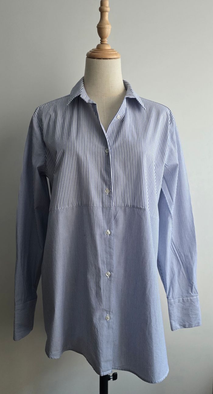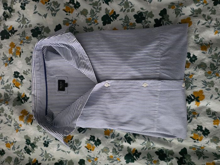 Chemise de marque Pepe Jeans, taille S, 100% coton. Coupe ample, rayée bleu / blanc. 1 bouton de rechange.