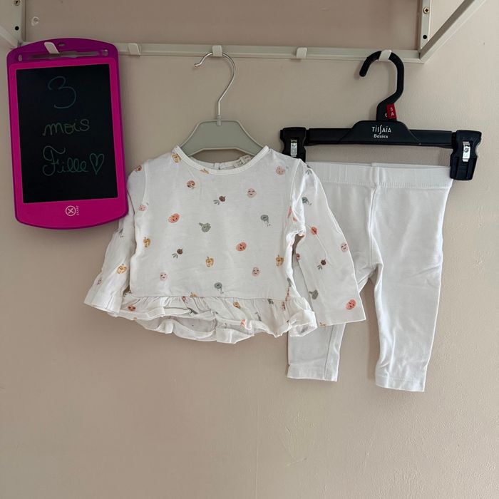 Ensemble complet fille, maillot longues manches et legging blanc - T3mois - Zara - photo numéro 3