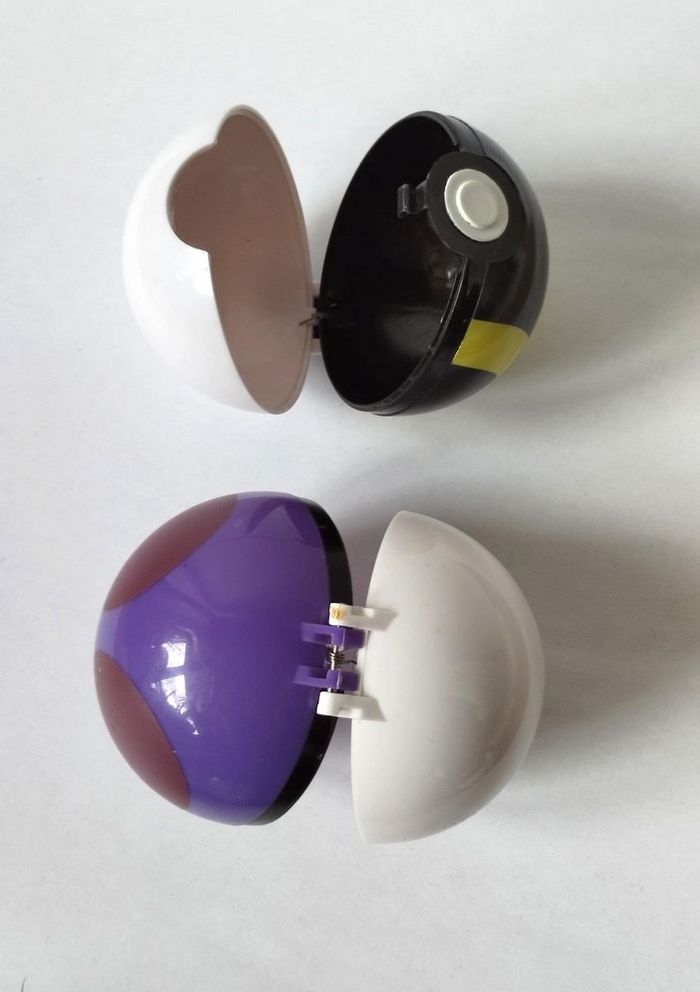Lot de 5 Pokeball pour capturer les Pokémon - 2 sans attache ceinture (violette et noire / jaune) - 3 avec clip ceinture Beaucoup servies, ont parfois du mal à ouvrir / fermer Traces d'utilisation, notamment sur la jaune / noire