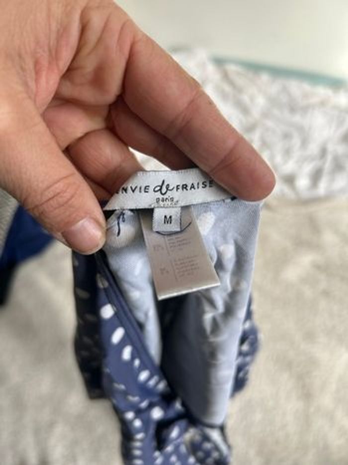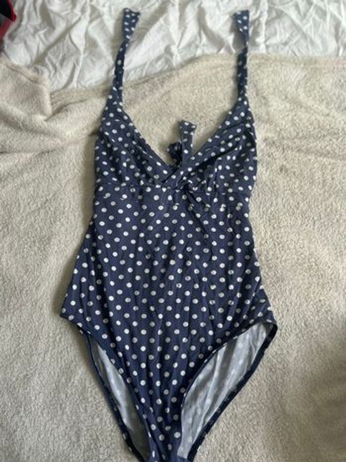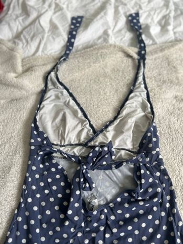 Maillot de bain de grossesse De noue autour du cou et un lien permet de resserrer dans le dos L’étiquette se détache Bien porté mais bon état général