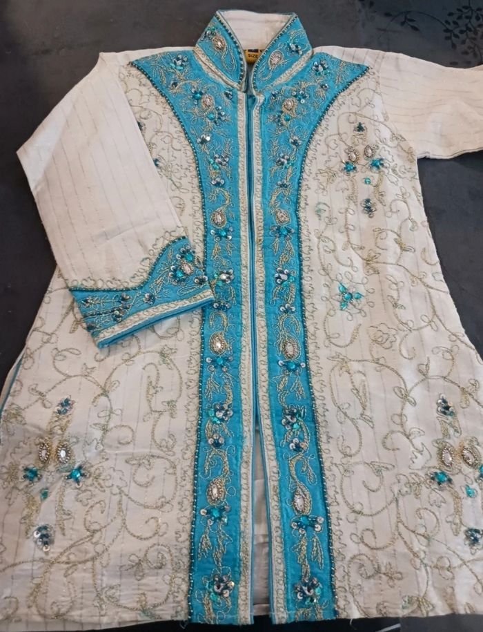 Tenue indienne turquoise blanche