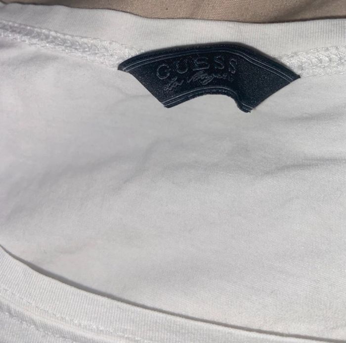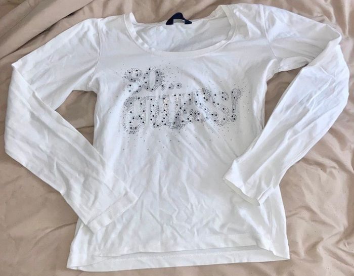 T-shirt couleur blanc à strass marque et motif guess taille S bon état