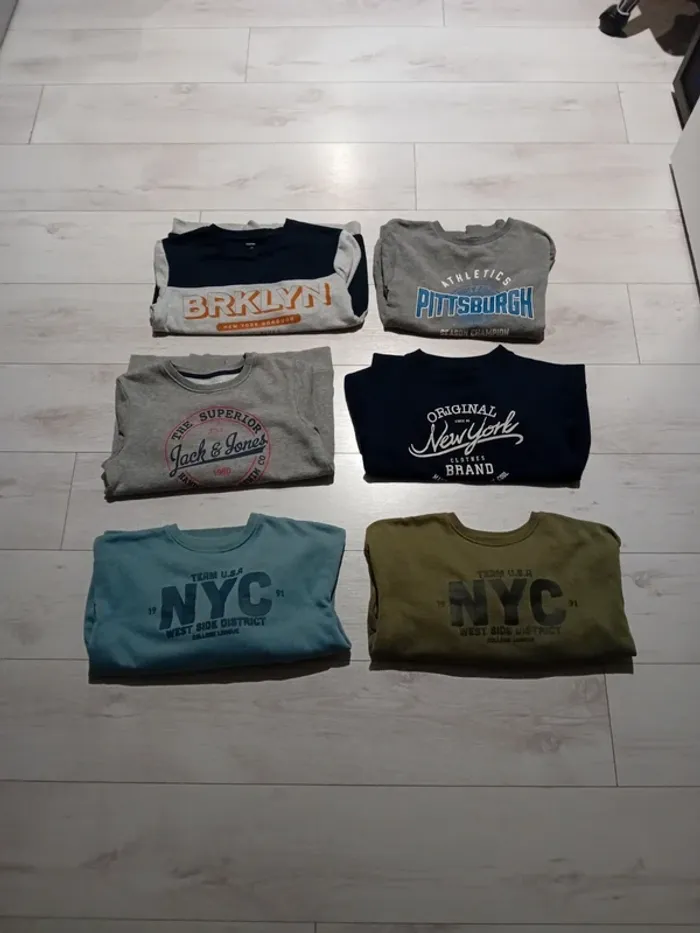 Lot de 6 sweats. Doublure molletonnée. Parfait état. Certains sont neufs.