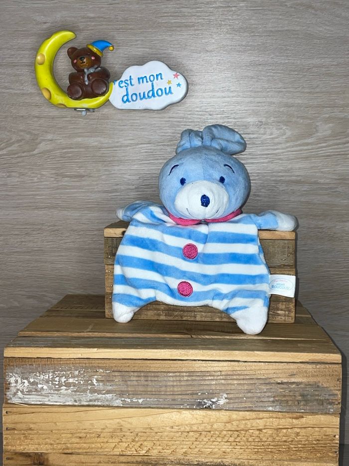 🌺 Bonjour, vendeuse professionnelle 🌺 Je vous propose le Doudou suivant : Marque : Mont Roucous Genre : lapin Format : plat Coloris : bleu, rayé État d’occasion : très bon Stock : 1 RÉFÉRENCE : LAI22 ➡️ Pour plus de modèles de cette marque, cliquez ici : #lait_cestmondoudou #montroucous_cestmondoudou ⭐️ La décoration (boîte...) n'est pas vendu avec le doudou ⭐️