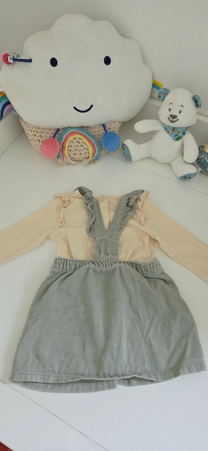 Robe salopette denim et t-shirt manches longues 12 mois - photo numéro 2