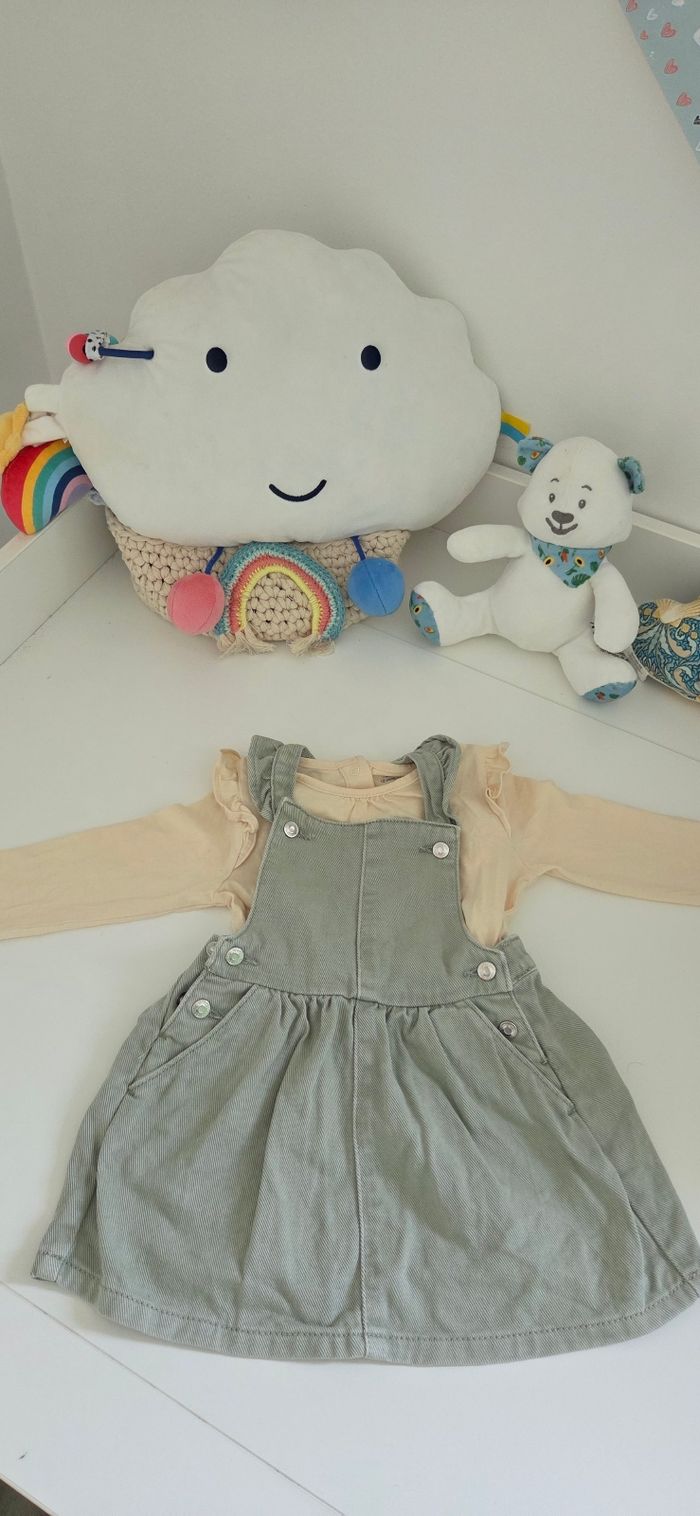 Robe salopette denim et t-shirt manches longues 12 mois - photo numéro 1