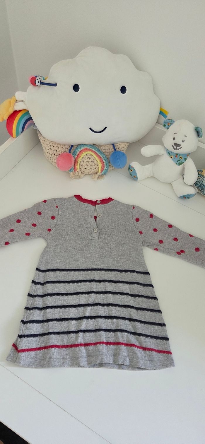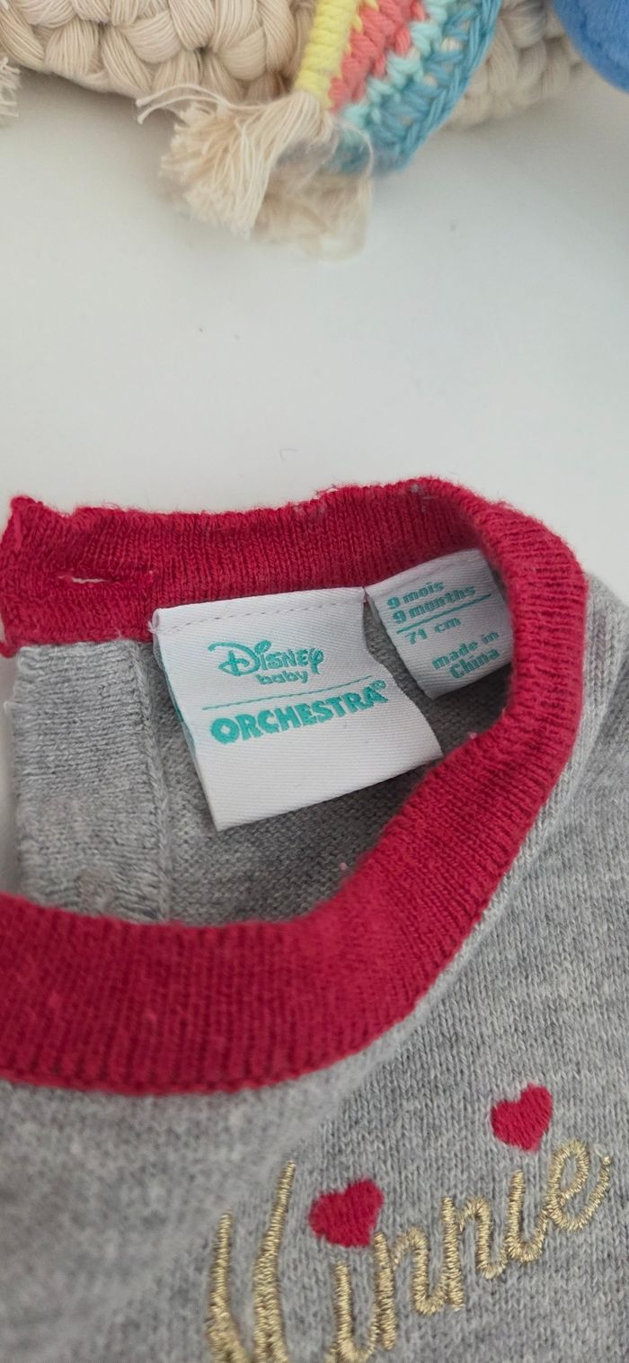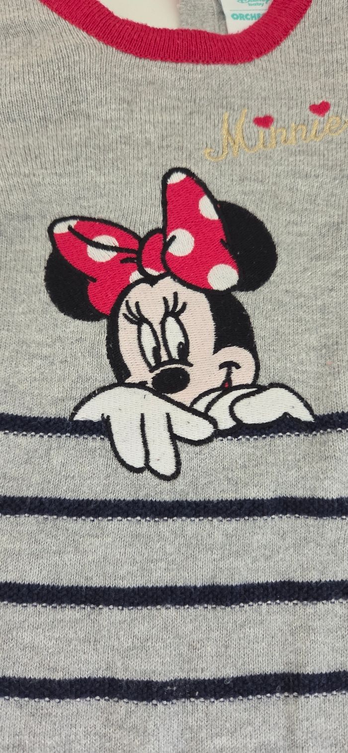 Robe Minnie grise à pois rouge et rayures bleues Taille 9 mois 71 com Orchestra Disney Très bon état