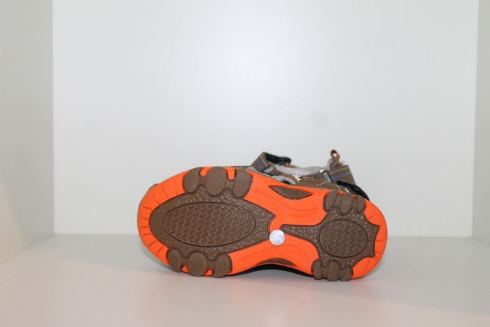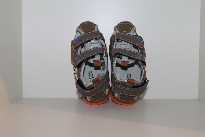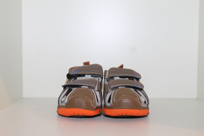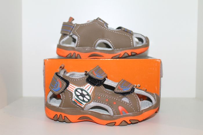 sandales nus pieds marron et orange pointure 28 neuves dans boites,model avec 3 velcros pour un serrage au plus juste et fermer au bout pour éviter que les doigts de pieds de dépassent.dimensions semelle intérieur 16,5 cm en mesurant au milieu de la semelle devant et derrière. marque infiniti shoes réf 1751 n'hésitez pas à faire un lot.