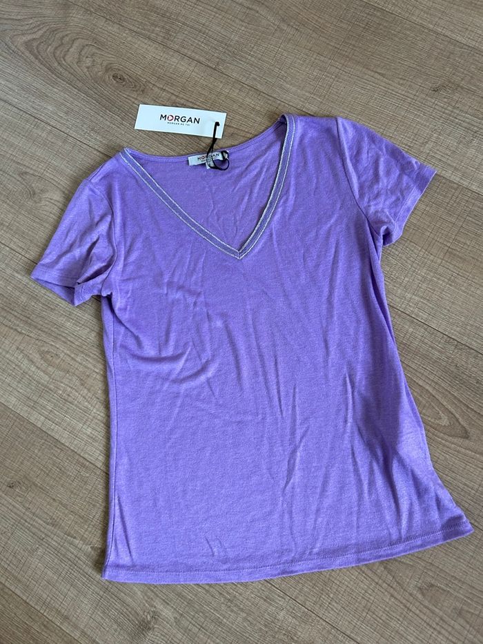 Haut lilas pailleté neuf Morgan taille S (valeur 30€) - photo numéro 5