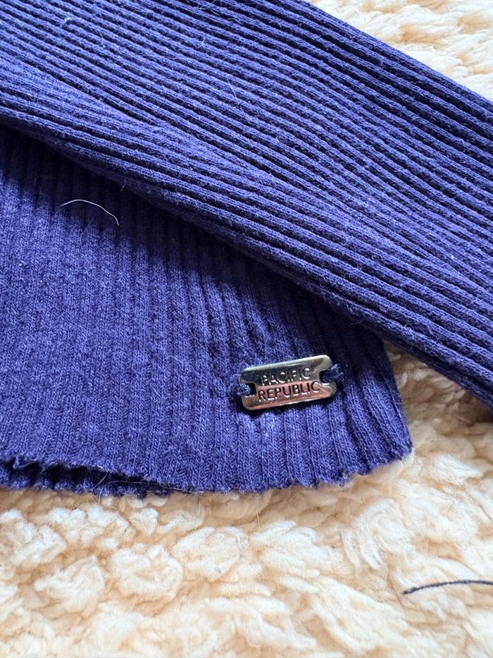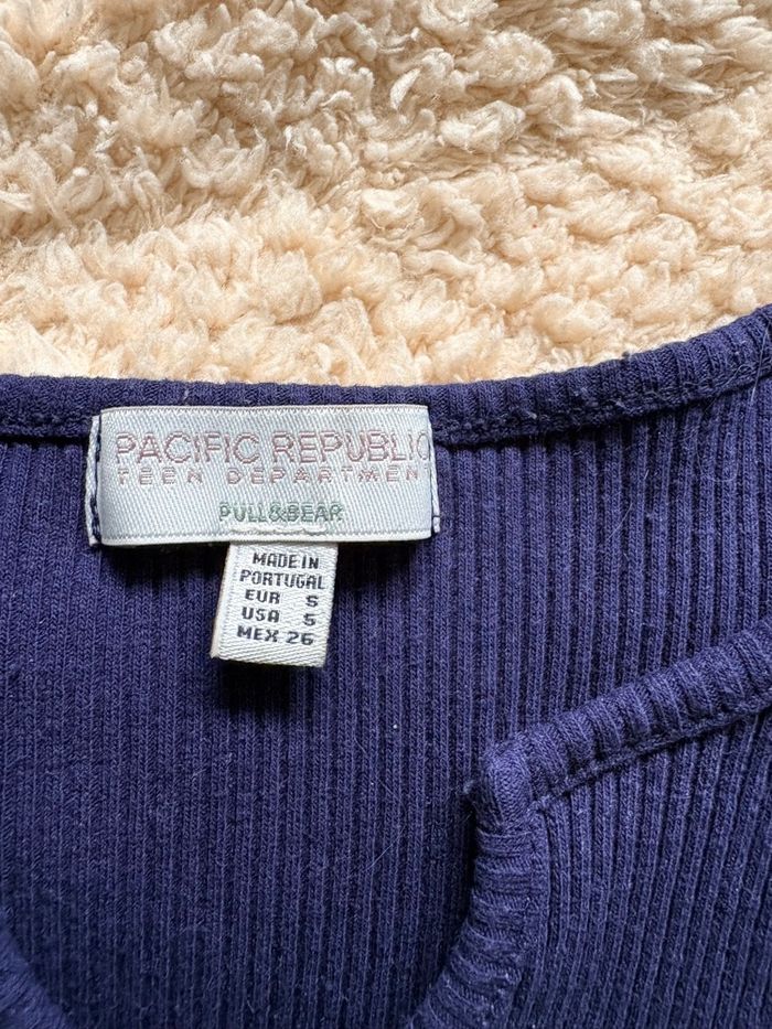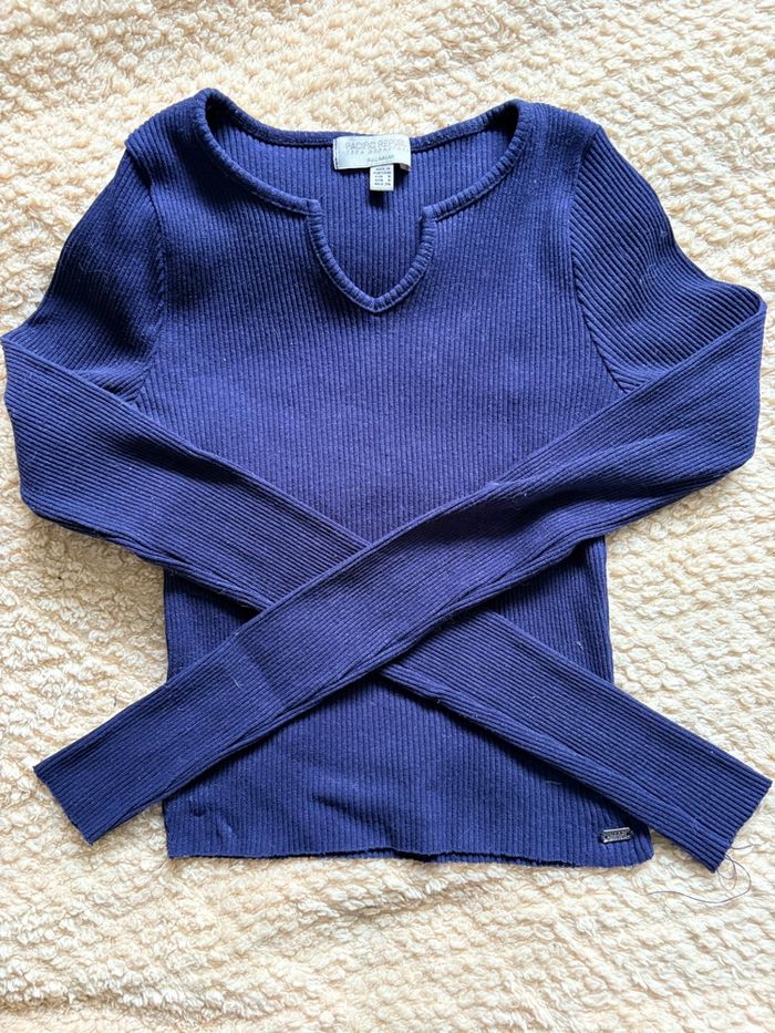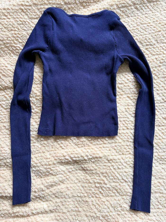Blouse manche longue de couleur bleu marine, taille XS/S. Colle à la peau.
