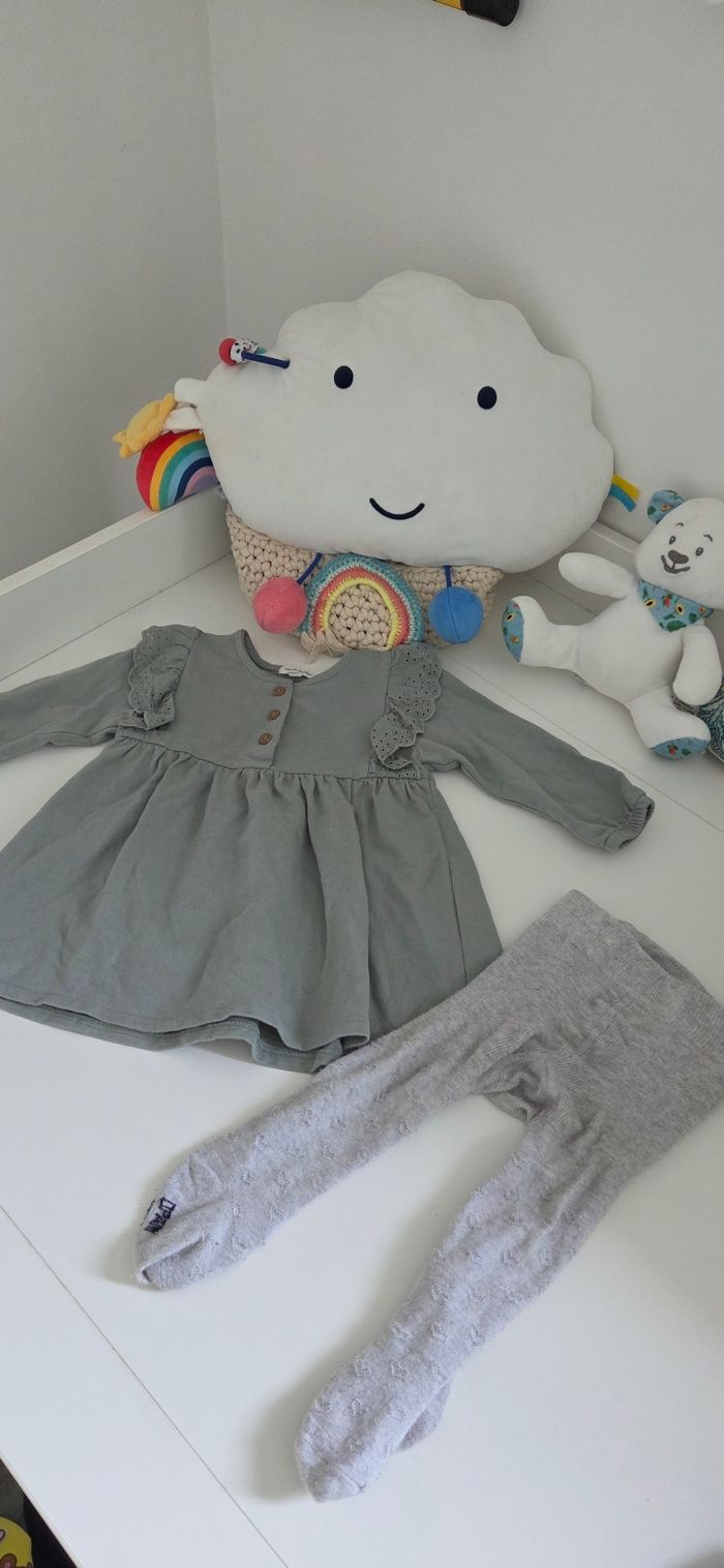 Robe vert pâle à manches longues + collant gris Taille 17-18 (du pareil au même) Vertbaudet 12 mois Très bon état