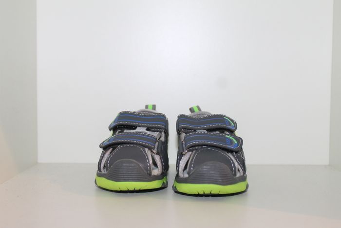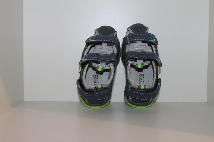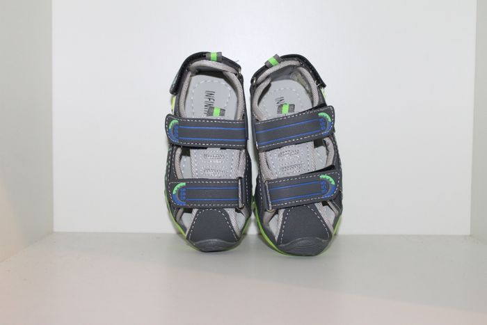 sandales nus pieds grise et verte pointure 25 neuves dans boites,model avec 3 velcros pour un serrage au plus juste et fermer au bout pour éviter que les doigts de pieds de dépassent.dimensions semelle intérieur 14,5cm en mesurant au milieu de la semelle devant et derrière. marque infiniti shoes réf 0635 n'hésitez pas à faire un lot.