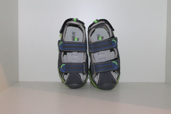sandales nus pieds grise et verte pointure 26 neuves dans boites,model avec 3 velcros pour un serrage au plus juste et fermer au bout pour éviter que les doigts de pieds de dépassent.dimensions semelle intérieur 15 cm en mesurant au milieu de la semelle devant et derrière. marque infiniti shoes réf 0635 n'hésitez pas à faire un lot.