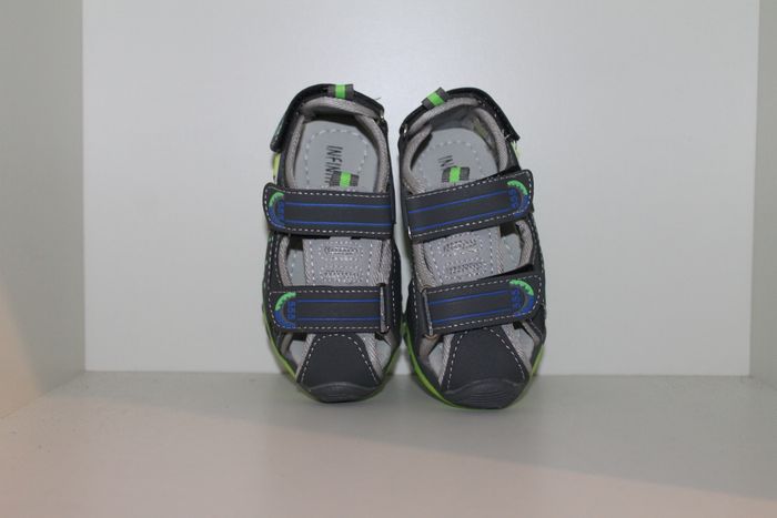 sandales nus pieds grise et verte pointure 28 neuves dans boites,model avec 3 velcros pour un serrage au plus juste et fermer au bout pour éviter que les doigts de pieds de dépassent.dimensions semelle intérieur 16,5 cm en mesurant au milieu de la semelle devant et derrière. marque infiniti shoes réf 0635 n'hésitez pas à faire un lot.