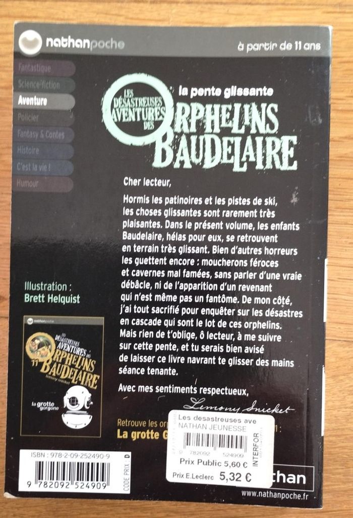 lot de 3 livres Les désastreuses aventures des orphelins Baudelaire de Lemony Snicket - tome 7 : l'arbre aux corbeaux - tome 9 : la fête féroce - tome 10 : la pente glissante Editions Nathan pour enfant dès 11 ans Quelques traces d'utilisation