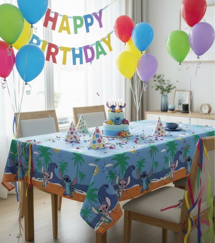 🌺 Nappe Plastique Stitch – 120x180 cm Apportez une touche de magie hawaïenne à vos fêtes avec cette nappe colorée inspirée de Lilo & Stitch 💙. Pratique et résistante : en plastique, elle protège efficacement votre table des petits accidents de fête. Format généreux : 120x180 cm, parfait pour accueillir vos invités autour d’un univers joyeux. Ambiance Disney garantie : idéale pour les anniversaires, goûters ou soirées à thème. 🎉 Transformez chaque repas en aventure tropicale avec Stitch, le compagnon malicieux qui mettra le sourire à tous les convives !