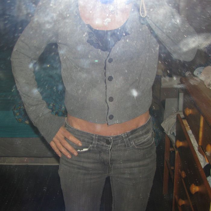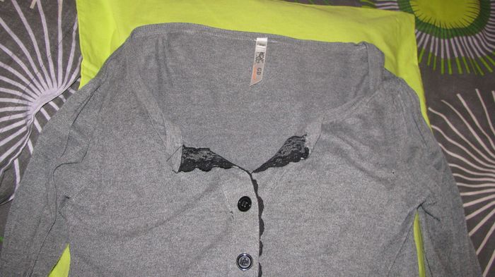 cardigan gris et noir court viscose et elasthane photo portée sur 1.54 ok 36/38