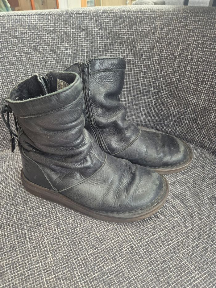 À vendre, une paire de bottines Dr. Martens authentiques en cuir noir souple. Modèle très confortable avec un look légèrement plissé et fermeture éclair sur le côté pour les enfiler facilement. ​Pointure : 36 ​Cuir véritable ​Bon état général. Quelques traces d'usure normales sur le cuir (visibles sur les photos), ce qui leur donne un bel aspect patiné. Les semelles sont en bon état. ​✨ Idéales pour un look rock ou décontracté tout en restant bien au sec ! ​ #drmartens #docmartens #bottines36 #docmartens36 #cuirnoir #chaussuresfemme #rockstyle #grunge