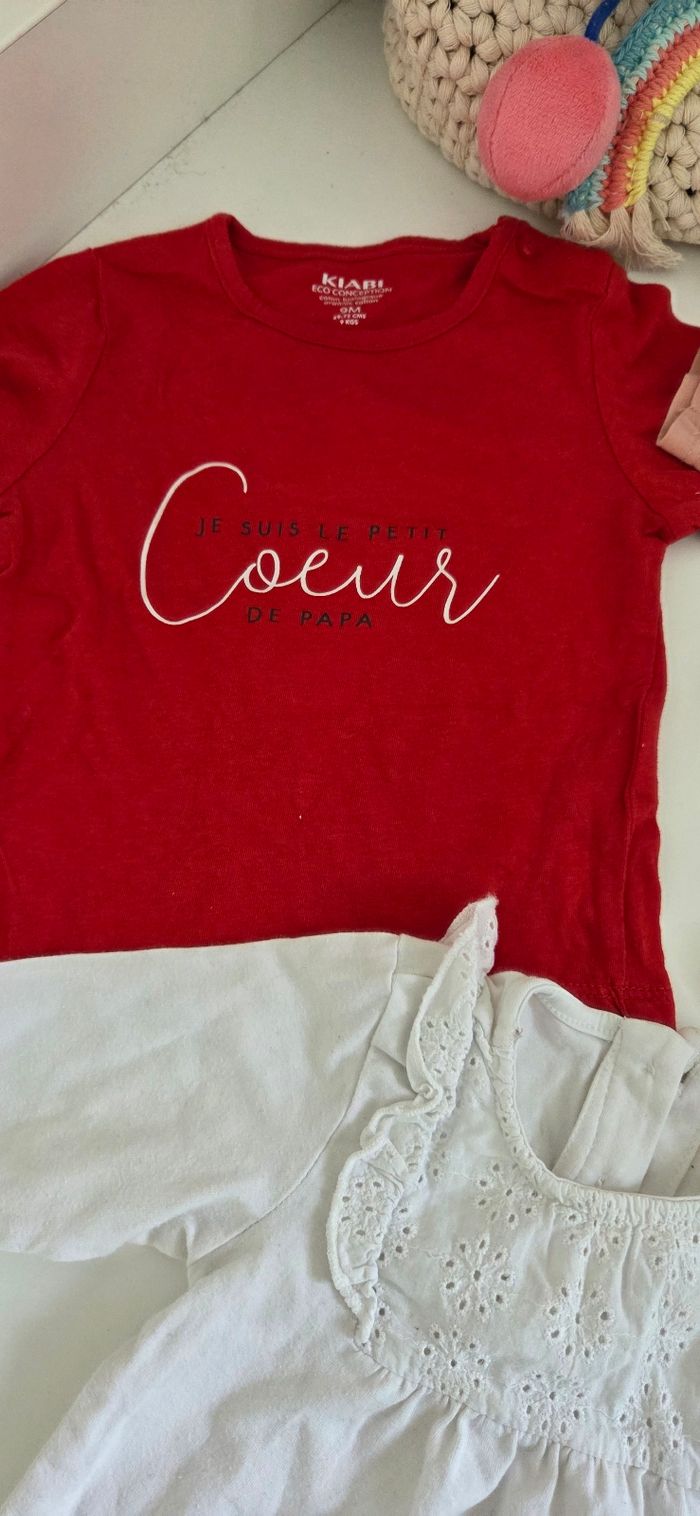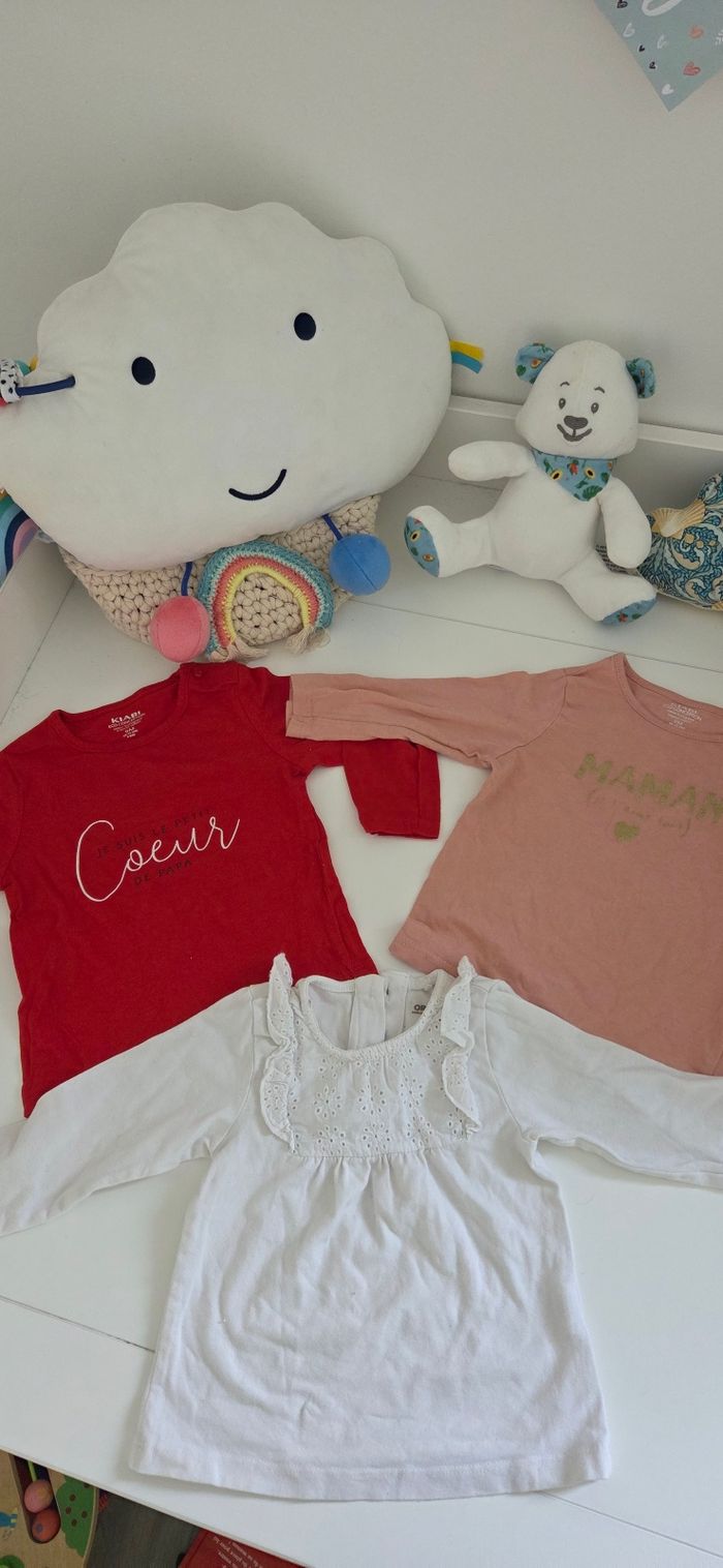Lot de 3 t-shirt manches longues 9 mois 1 rouge 1 blanc et 1 rose pâle 69-72cm Kiabi et Orchestra Très bon état
