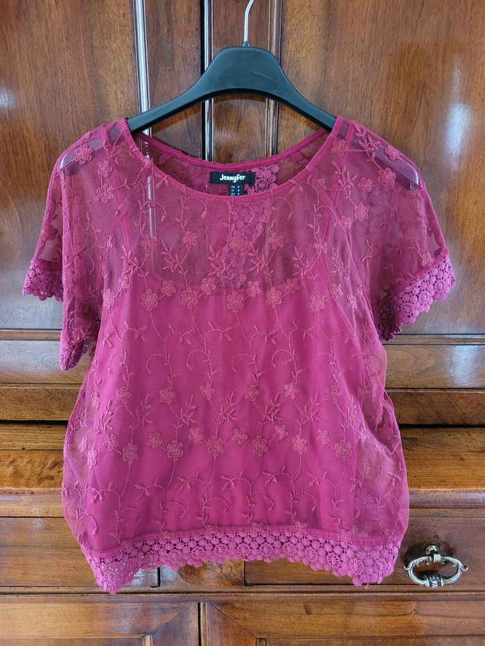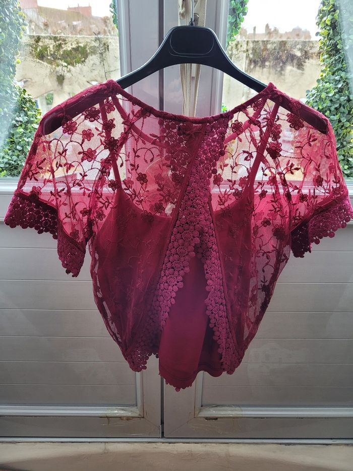 Blouse dentelle transparente avec top inclus. Bordeaux taille xs jennyfer. Très bon état ( peu portée) à saisir