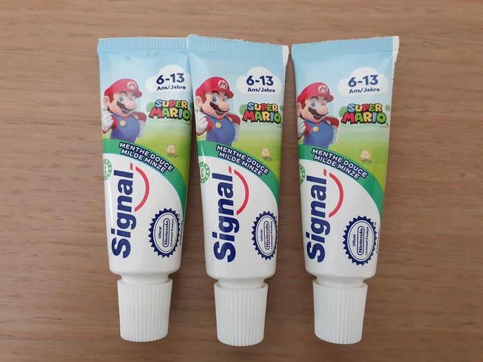 A vendre lot de 3 dentifrices Signal Super Mario pour enfants, menthe douce. Format voyage 14ml. Neufs ! Vendu 1€ le lot. Plusieurs lots disponibles si besoin ! N'hésitez pas à jeter un coup d'œil sur mon dressing. Une réduction dès 2 articles achetés ! #elodieeden45_cosmétiques