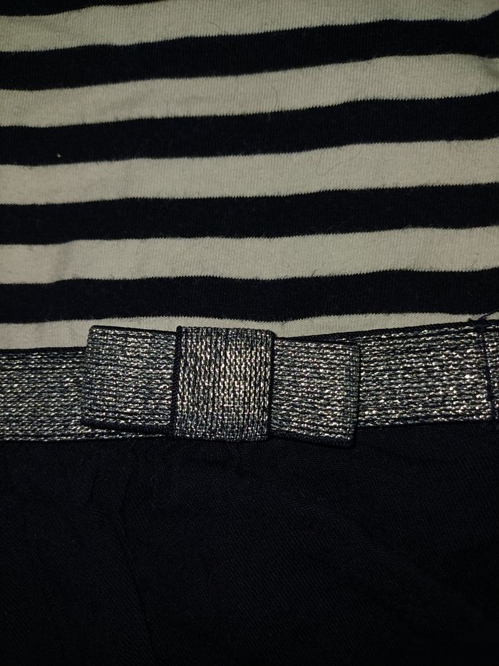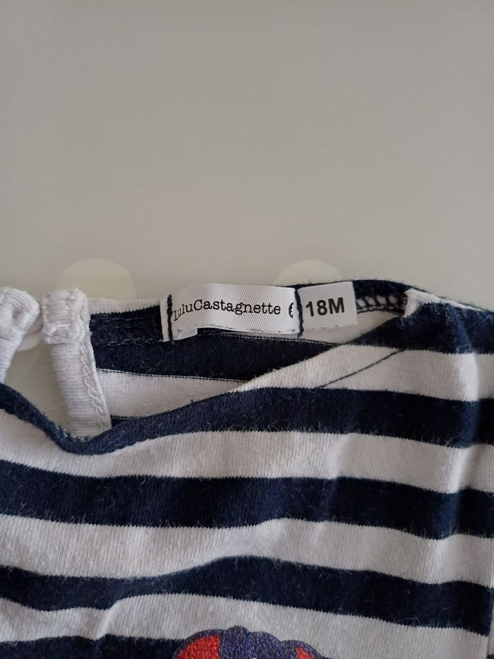 Très jolie robe 👗 de couleur bleu marine blanc et rouge en très bon état. La marque est LULU CASTAGNETTES et la taille 18 mois. Elle s'attache avec un bouton dans le dos voir la photo ci jointe.