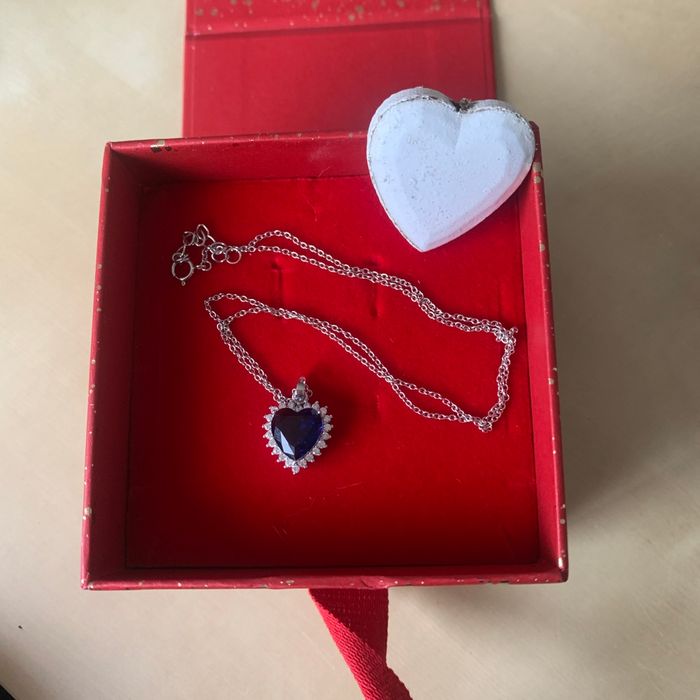 Chaîne et son pendentif en forme de cœur couleur bleu . État neuf .