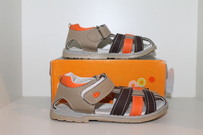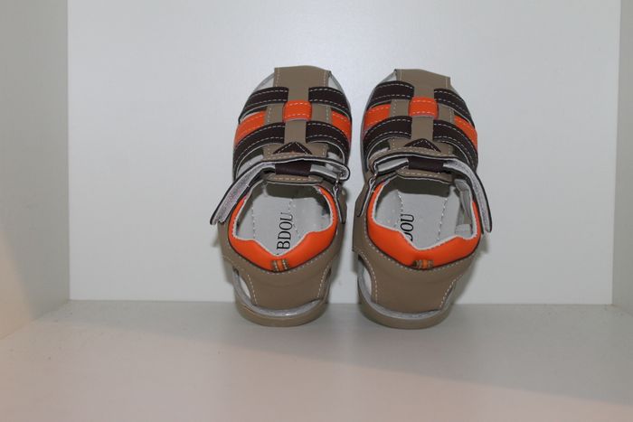 sandales nus pieds marron et orange pointure 26 neuves dans boites,model avec 1 velcros pour un serrage au plus juste et fermer au bout pour éviter que les doigts de pieds de dépassent.dimensions semelle intérieur 15,5 cm en mesurant au milieu de la semelle devant et derrière. marque abdou réf 0623 n'hésitez pas à faire un lot.