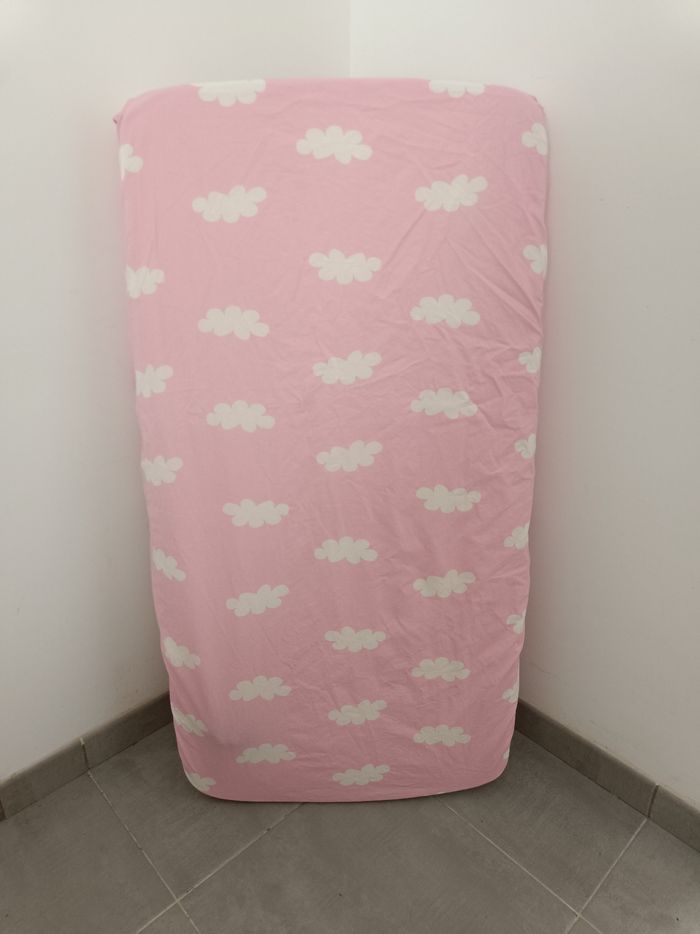 Utilisé et propre. Gamme : Himmelsk. Article sans trou ni tâche. Dessin : nuages blancs. Taille lit bébé : 60 x 120. Taille du retour : environ 18 cm. #melody45340puericulture