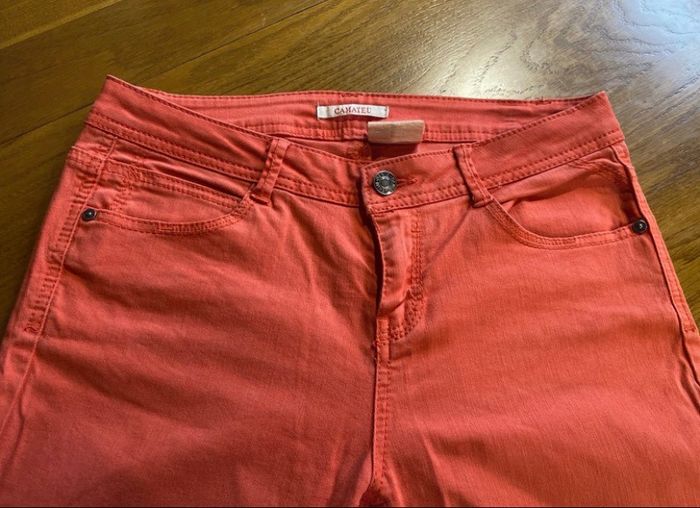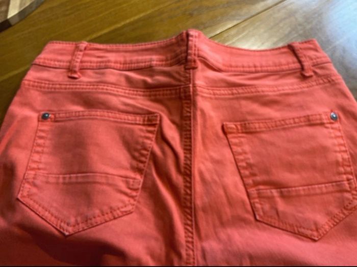 Pantalon taille 38 Couleur corail Hauteur 97 cm entrejambes 72 cm Coton elasthane