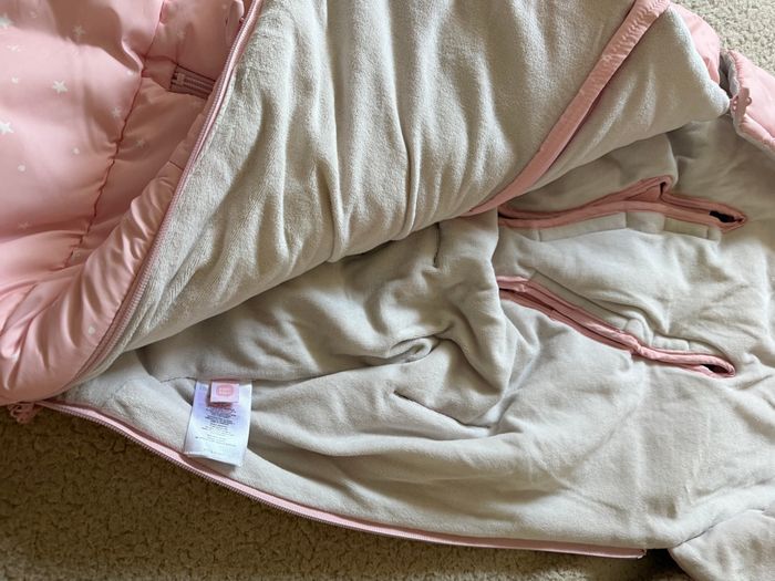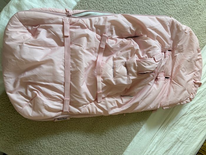 Chancelière universel de chez TUC TUC. Très chaude. S'adapte facilement sur la poussette ou le siège auto. Très peu utilisé.