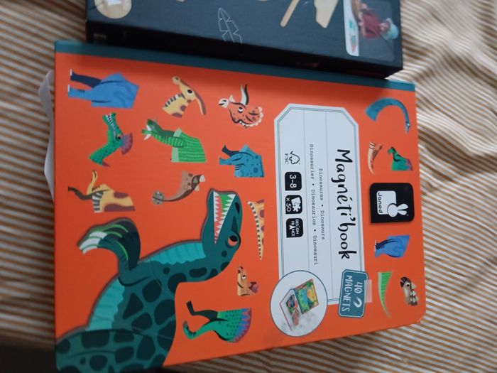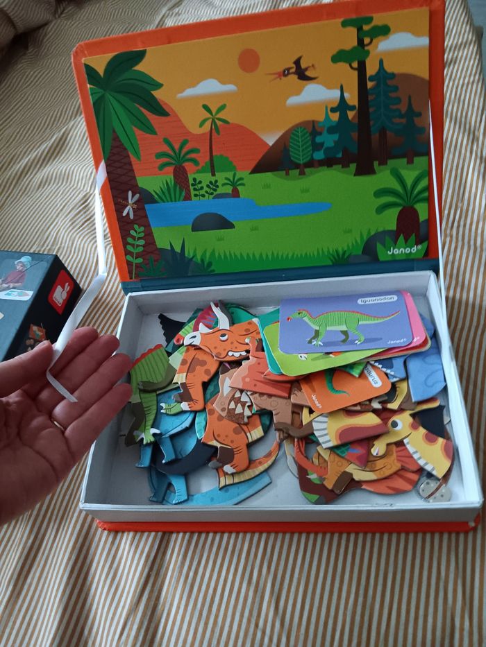 Un jeu dinosaure de chez janod jamais utiliser mes ouvert pour regarder Et un magneti'book dinosaure avec 1 defaut voir photo complet bon etat