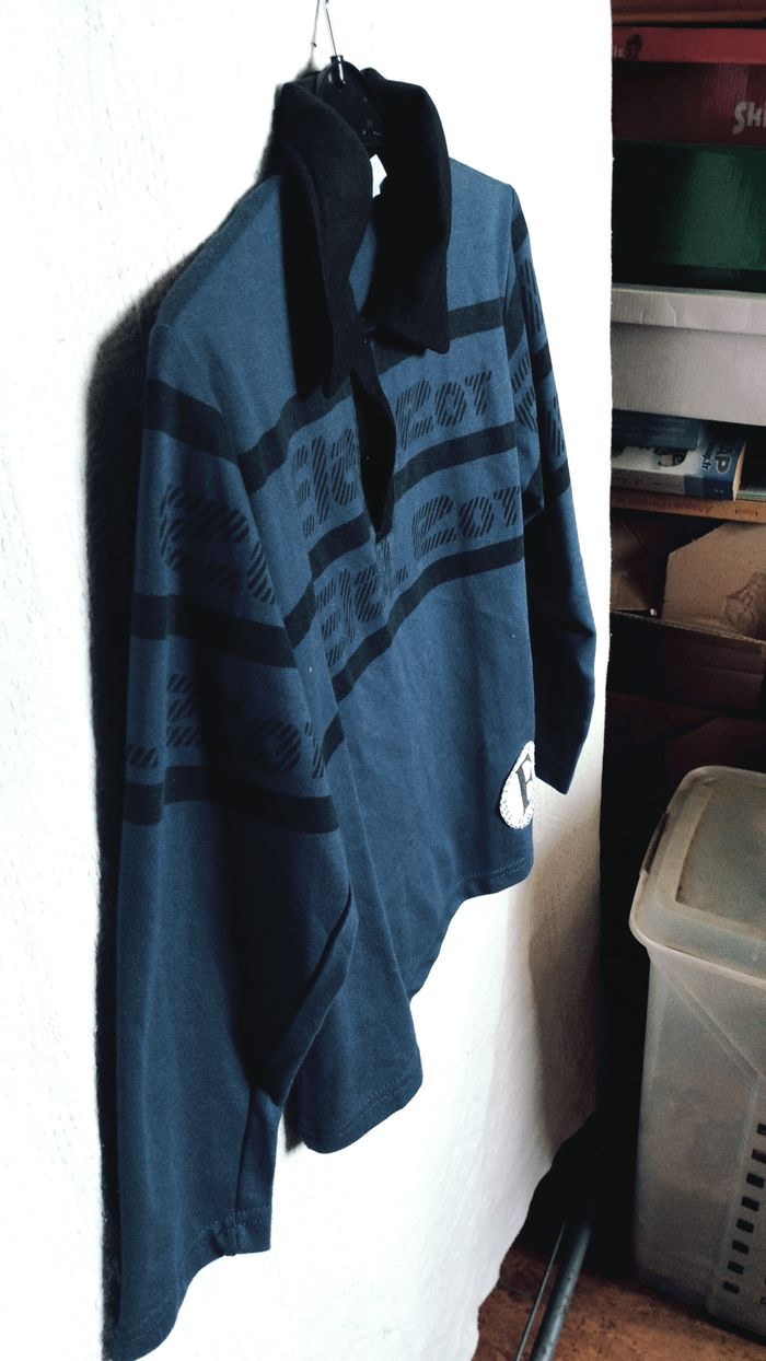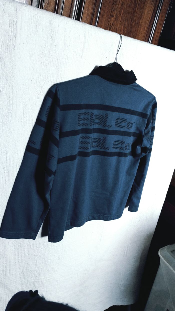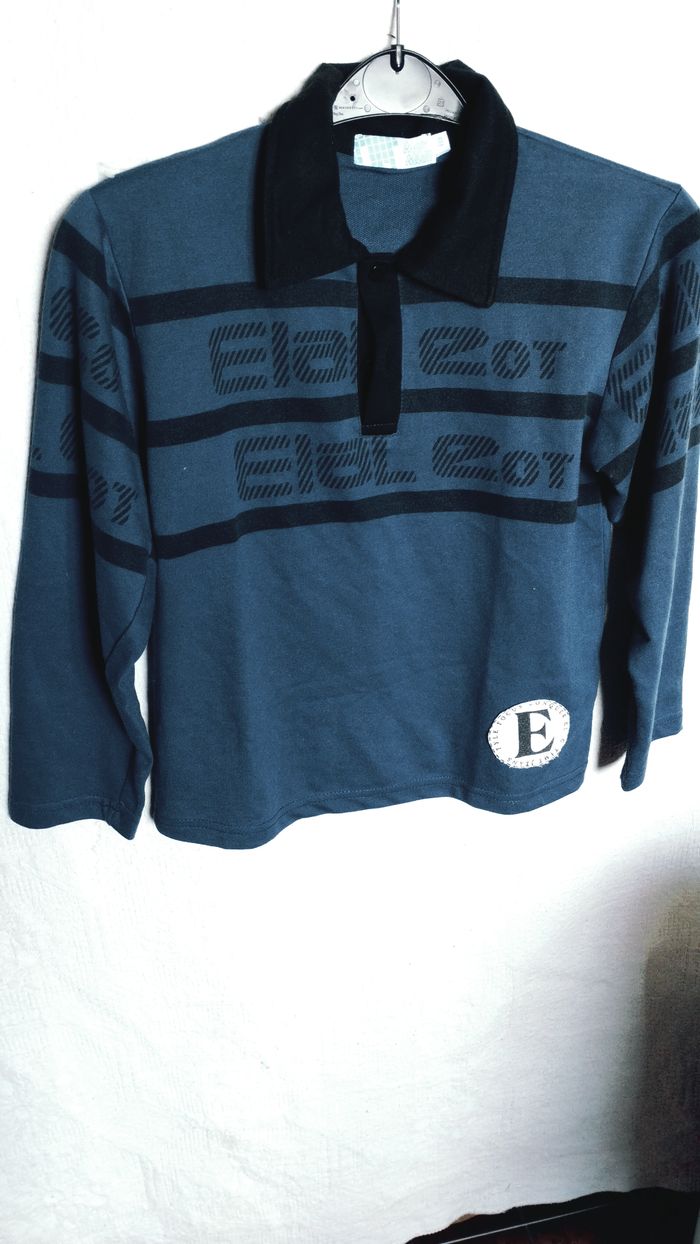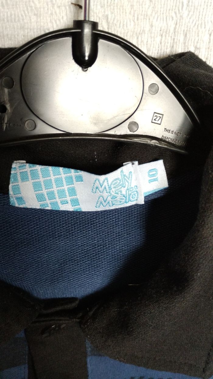 T‑shirt manches longues bleu marine à rayures, marque Mely Mela, taille 10 ans. Coupe confortable, matière douce, parfait pour le quotidien. Motif discret et moderne sur le devant, très bon état, aucune usure. Vue de face, vue de dos et étiquette ajoutées pour plus de transparence.