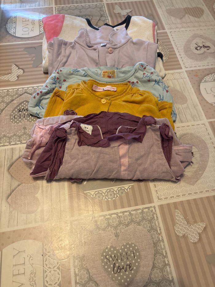 Vend lot de vêtements fille, il y a des vêtements qui peuvent être taché malgré plusieurs lavage. Dans ce lot il y a : un pyjama, un teeshirt manches longues , un teeshirt manche courte, un gilet et une robe sans manche