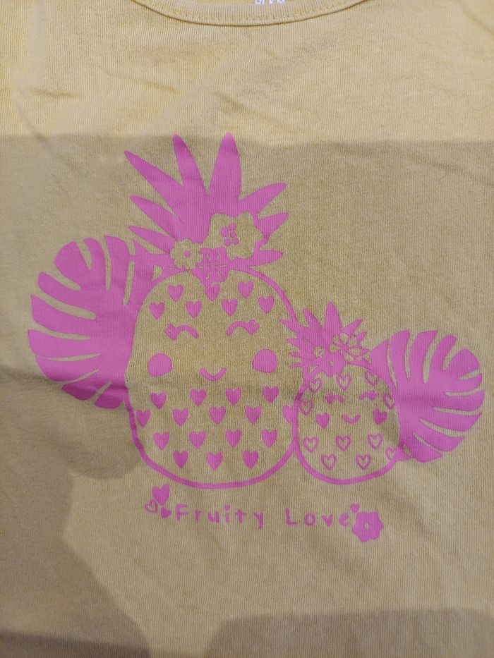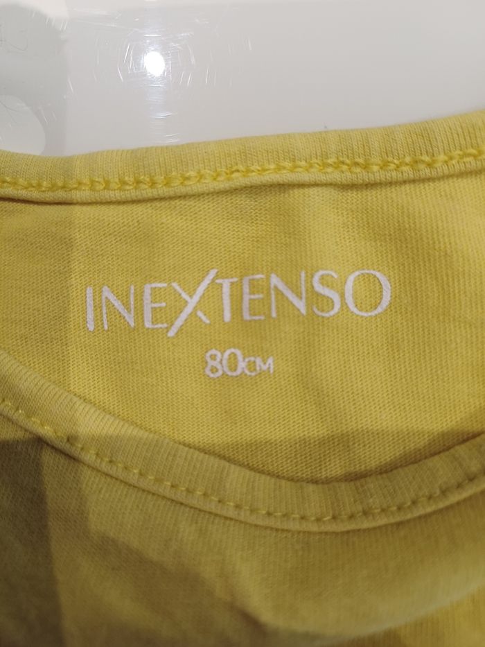 Très joli Tee-shirt de couleur jaune et rose fluorescent en très bon état. La marque est inextenso et la taille 12 mois.