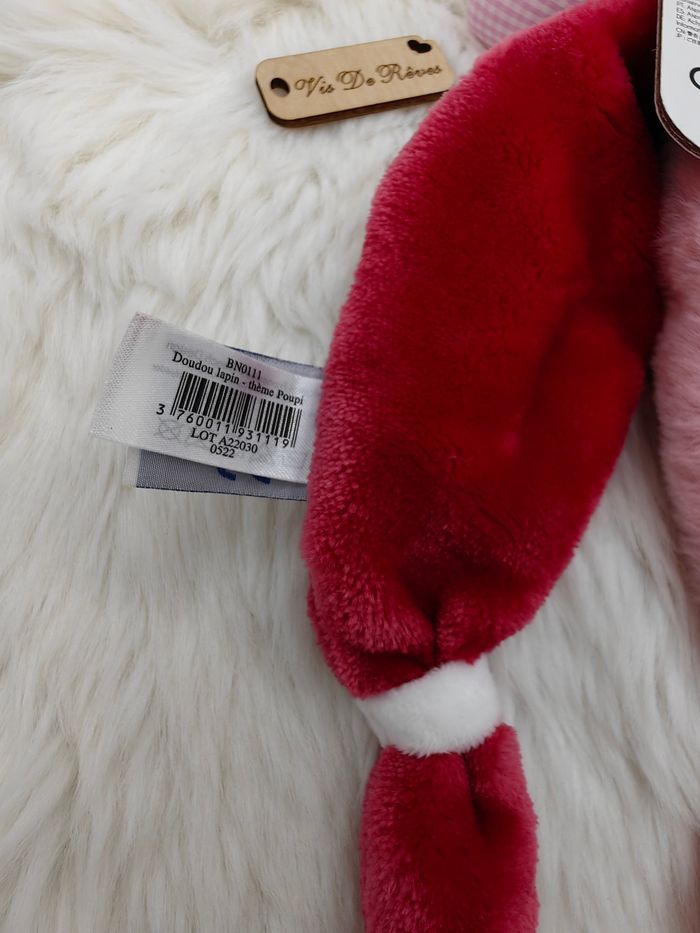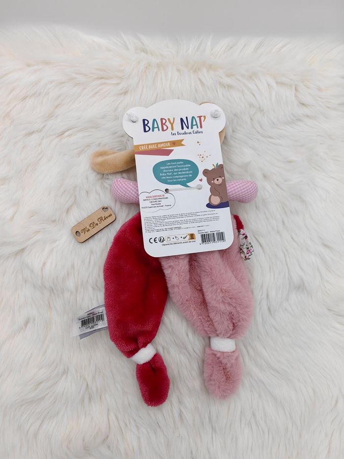 Doudou Lapin Poupi Bn0111 Baby Nat Beige rose rouge - photo numéro 4
