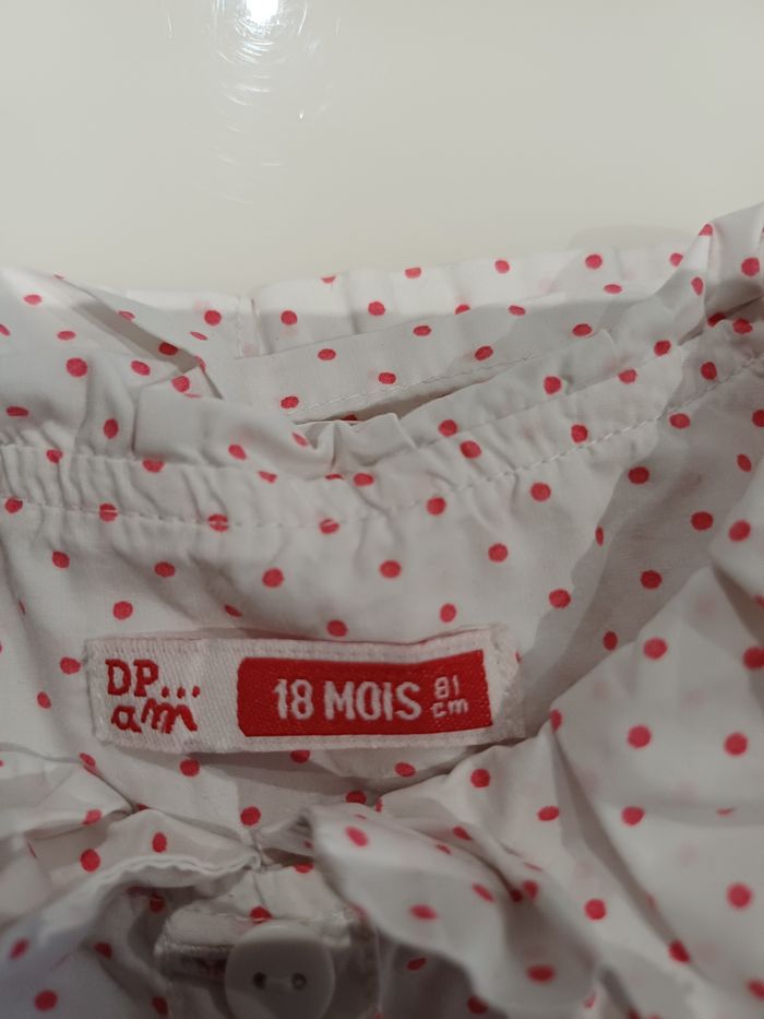 Très jolie chemise a manches longues blanche et rouge en très bon état. La marque est DU PAREIL AU MÊME et la taille 18 mois. S'attache avec 5 boutons devant voir la photo ci jointe.