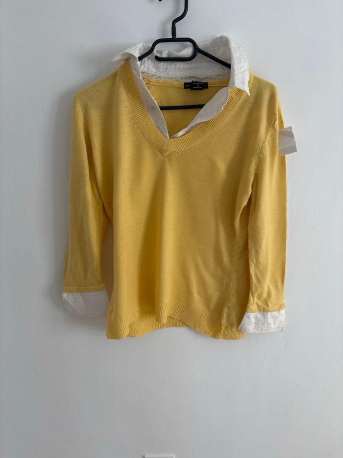 Pull jaune effet chemise intégrée – Taille S – Neuf