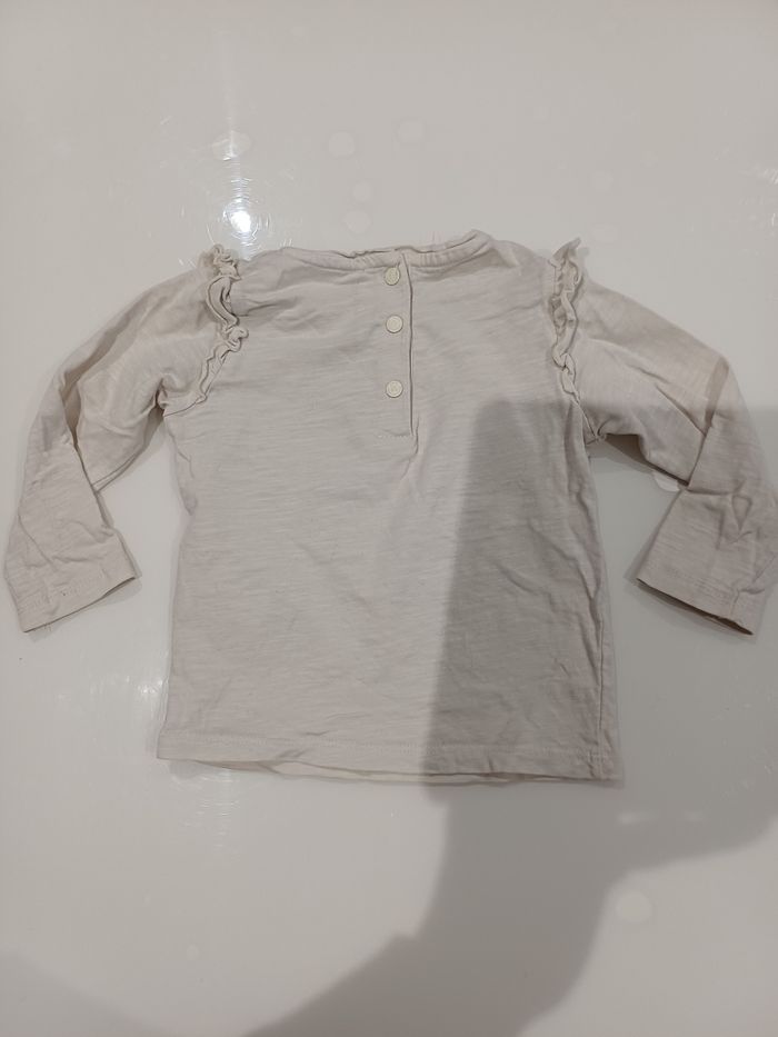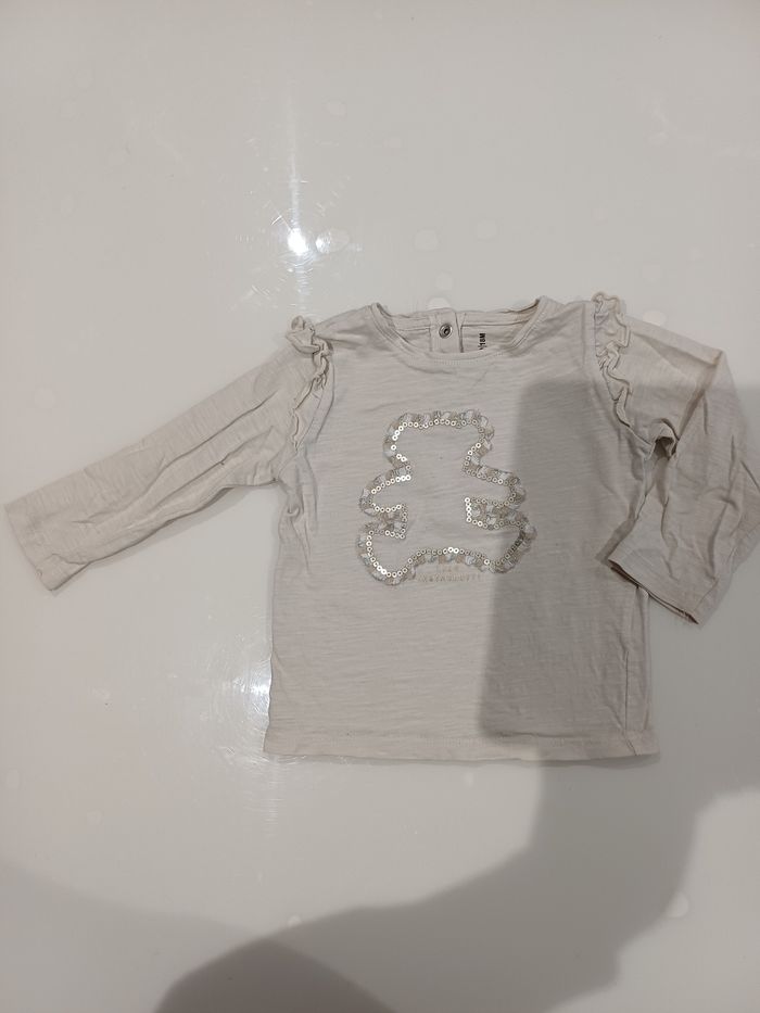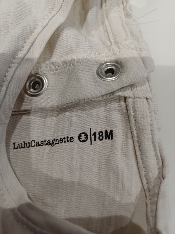 Très joli Tee-shirt a manches longues en très bon état. La marque est LULU CASTAGNETTES et la taille 18 mois. Il s'attache avec 3 pressions dans le dos au niveau du coup voir la photo ci jointe.