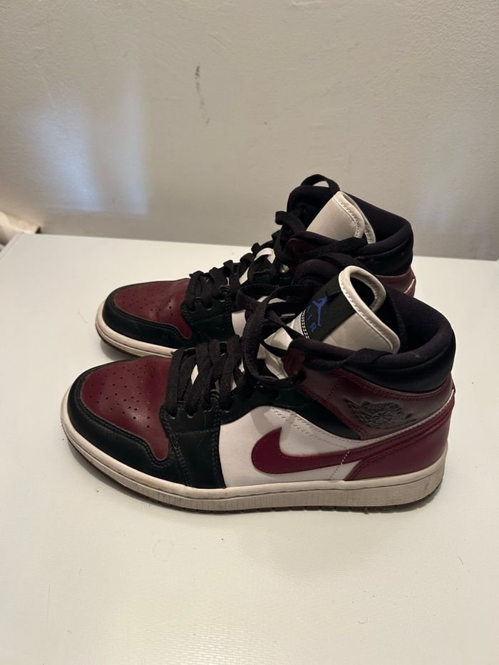 Bonjour, je vends une paire de Jordan montantes, couleur bordeaux noir et blanc en très bon état taille 38,5