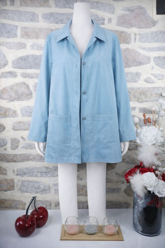 Veste blazer en suédine bleue ciel Vintage 1987 Femme taille 50 marque Guy Dubouis ✴️ Deux poches plaquées à rabats à I avant ✴️ Col classique ✴️ Surpiqure décorative en forme de vagues ✴️ Fente discrètes sur le côté ✴️ Couleur => Bleu ciel ✴️ Vintage => année 1987 ✴️ Mesure épaules à épaules => 50 centimètres ✴️ Tour de poitrine => 136 centimètres ✴️ Longueur => 78 centimètres