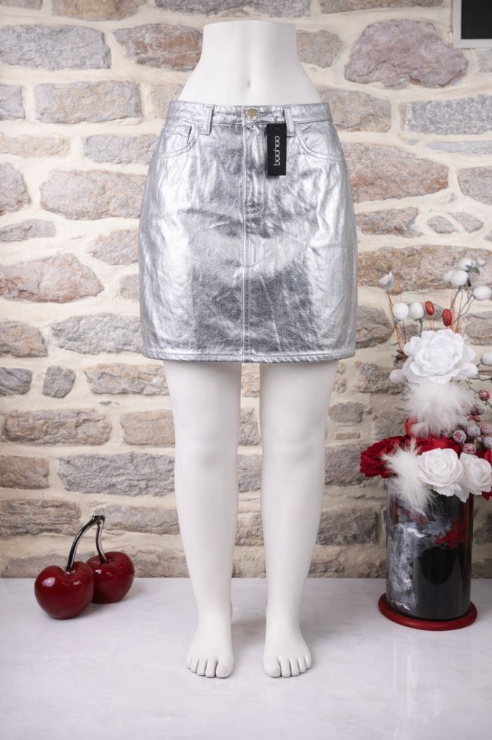 Mini jupe métallisée argenté Neuf avec étiquette Femme taille 44 marque Boohoo 🌺 - photo numéro 1