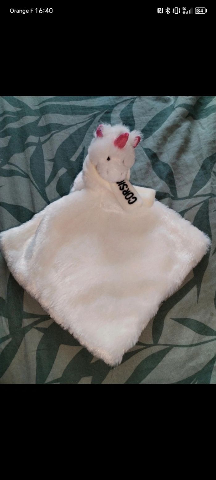 Doudou licorne Corsica Etat : neuf Couleur : blanc / rose Réduction de lots activés sur mon profil jusqu'à 30% ✨