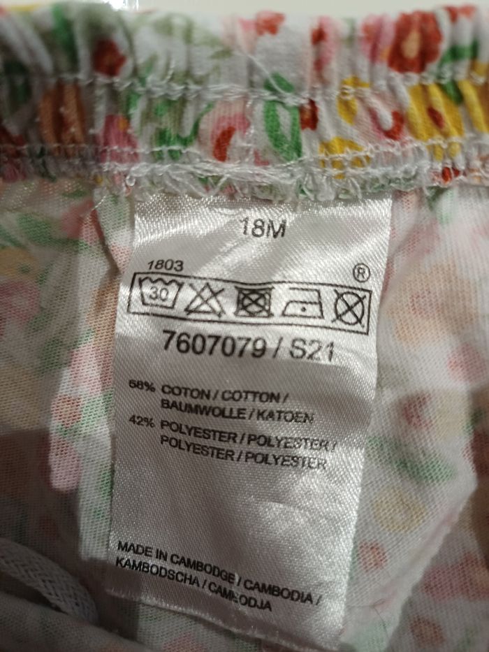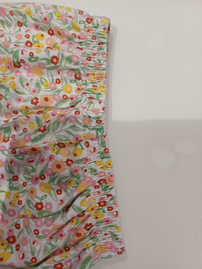 Très joli short en tres bon état la taille est 18 mois. Taille élastique est les jambes aussi voir les photos ci jointe. Les motifs sont des fleurs voir la photo ci jointe.