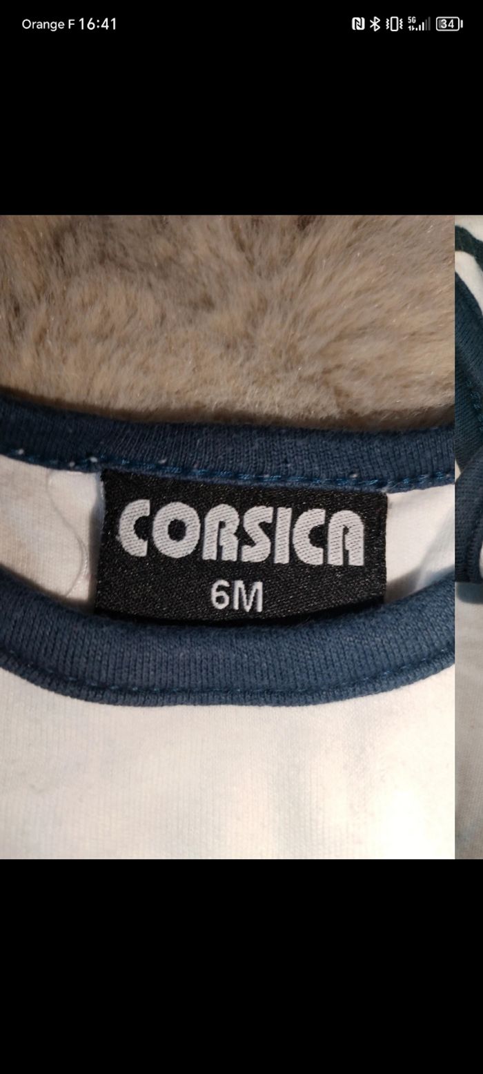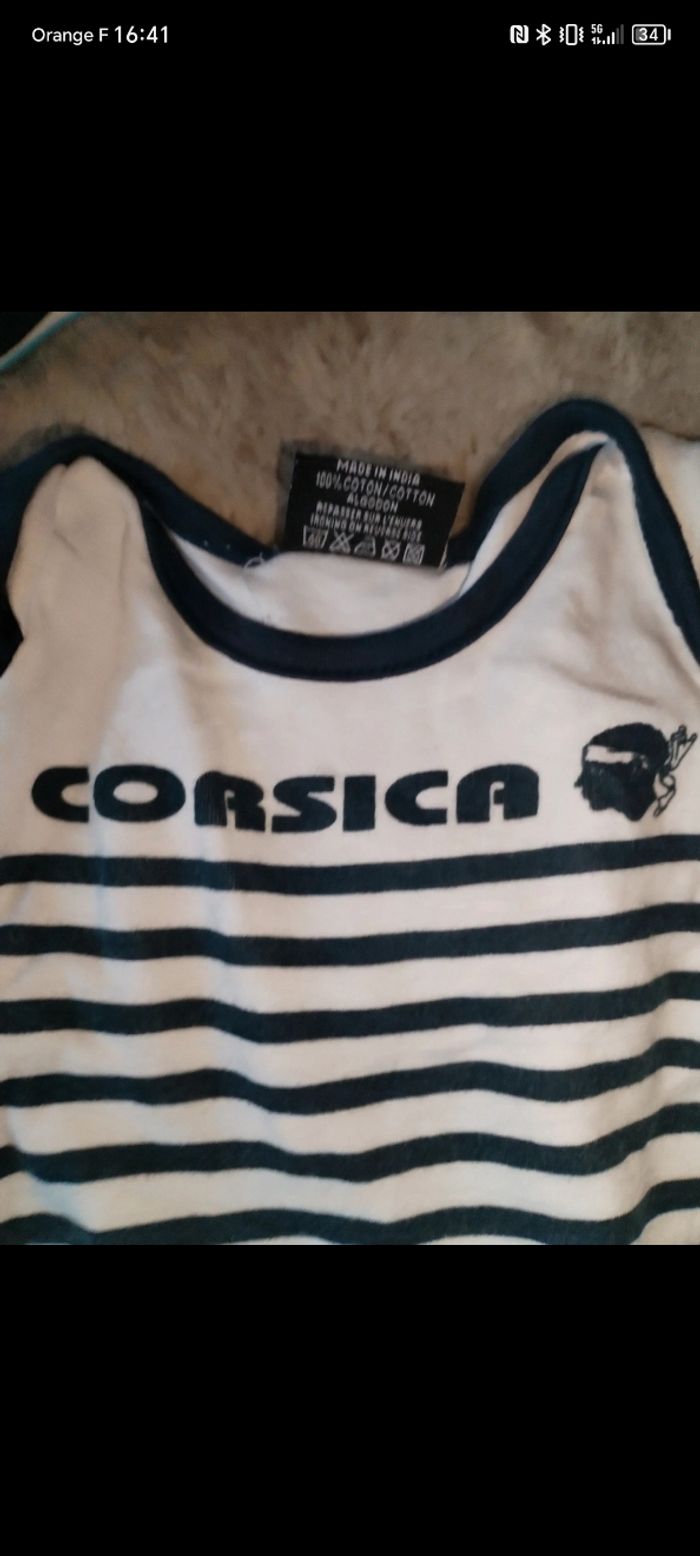 Bodie manche courte Taille : 6 mois État : très bon état Couleur : Bleu marrine/blanc Marque : Corsica Prix : 3€ Réduction de lots actives jusqu'à 30% sur mon profil ✨